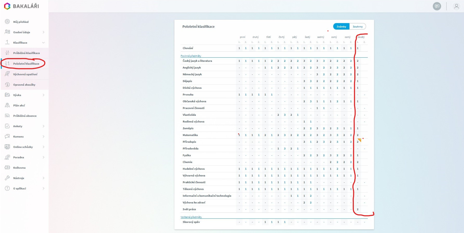 Výpis z vysvědčení za 1. pololetí školního roku 2020/2021 bude žákům 1. a 2. ročníku, kteří se vzdělávají prezenčně ve škole, předán ve čtvrtek 28. ledna 2021 v rámci poslední vyučovací hodiny. V případě žáků 3. až 9. ročníku, kteří se vzdělávají distančně, bude výpis z vysvědčení předán nejpozději třetí vyučovací den, kdy bude umožněna jejich osobní přítomnost ve škole. Žáci a jejich zákonní zástupci naleznou hodnocení také na svém uživatelském účtu v systému Bakaláři (viz informace níže). V případě, že by si některý z žáků či jeho zákonných zástupců potřeboval ze závažných důvodů osobně vyzvednout výpis z vysvědčení, může tak učinit od pátku 29. ledna 2021 v úředních hodinách sekretariátu školy v čase od 08:00 do 11:00 hodin (u hlavních dveří je nutno zazvonit na tlačítko sekretariát).