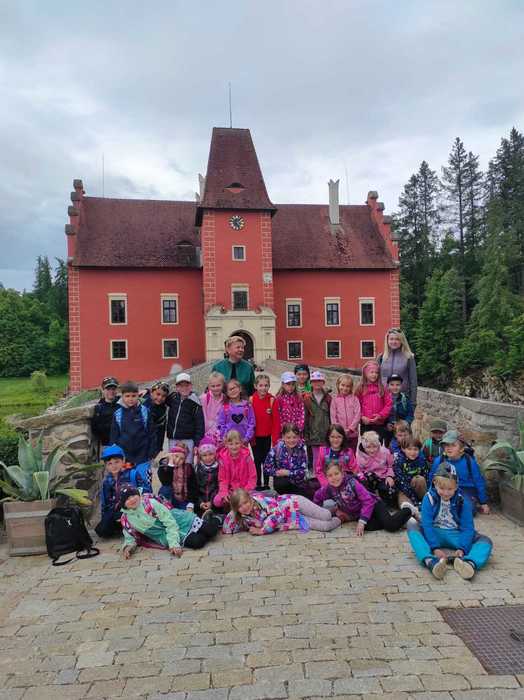 Dne 28.5. 2025 se uskutečnil školní výlet třídy 1.E na Červenou Lhotu. Shlédli jsme divadelní představení divadla Neklid Tři čuníci. Poté proběhla prohlídka podkroví zámku, kde se nacházejí dětské pokoje a dětské divadlo. Výlet se nám vydařil.