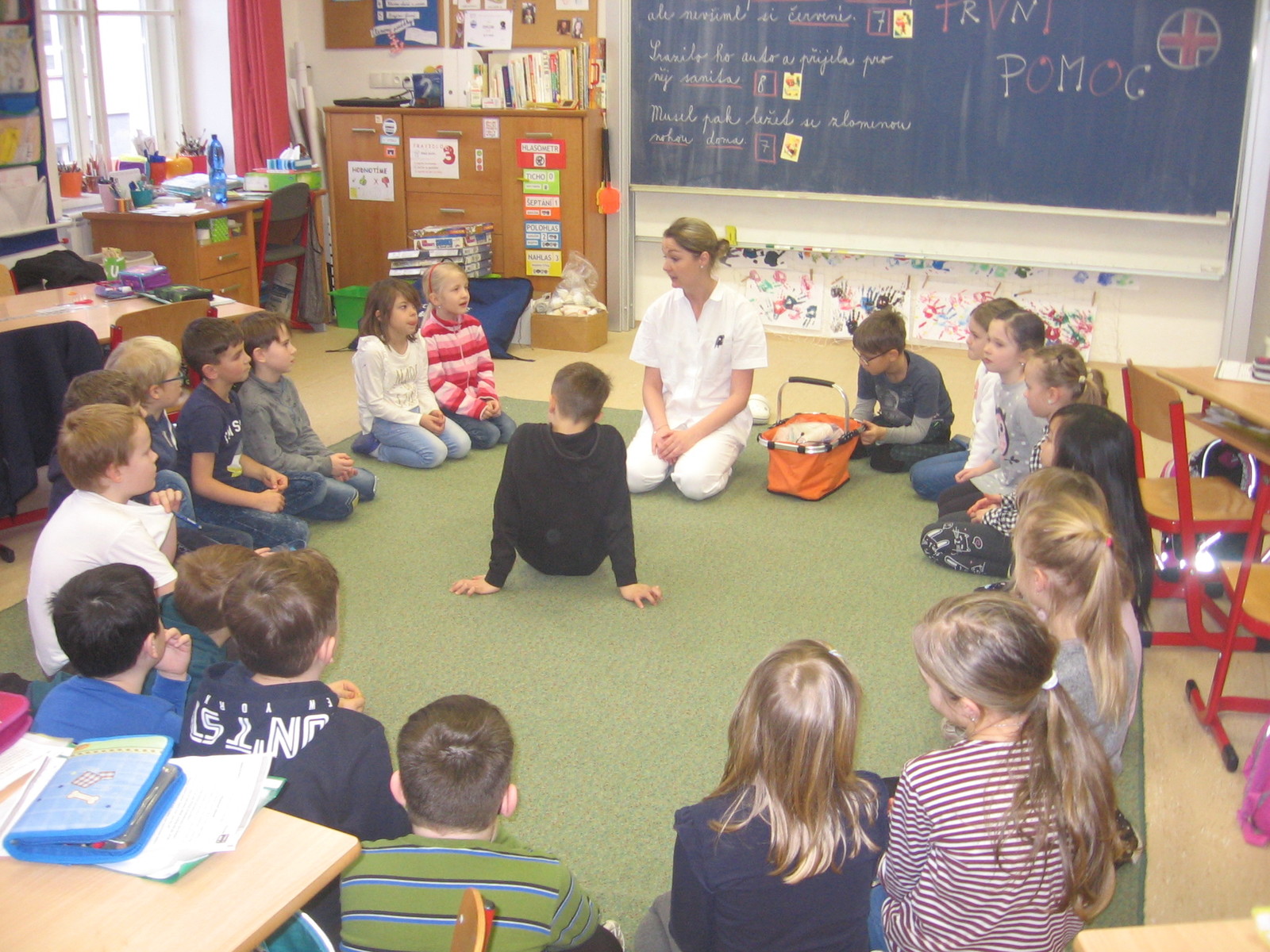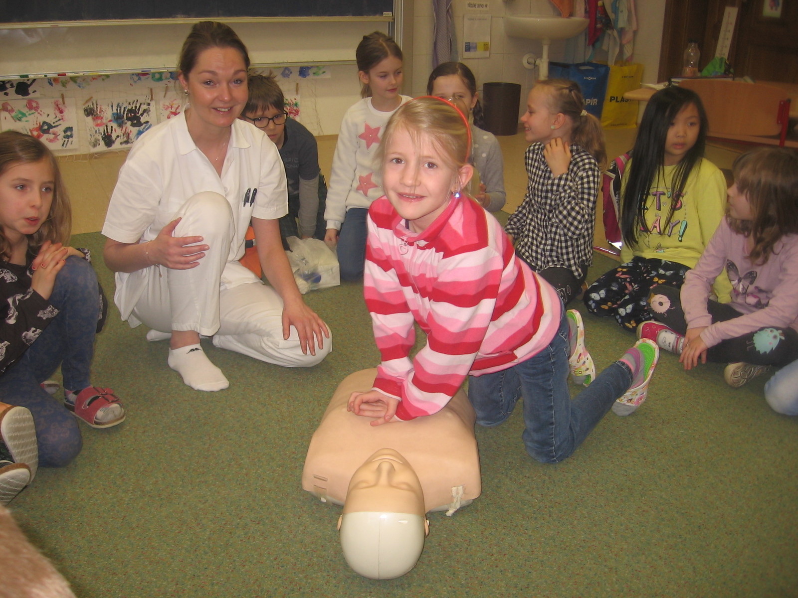 I ve druhé třídě pokračujeme s projektem, který má název Čím budu. Rodiče nám chodí do školy představovat svoje povolání. V pátek 7.2. 2020 jsme přivítali paní Mertovou, která nám ukázala, co musí umět zdravotní sestřička. Ošetřovali jsme popáleniny, obvazovali jsme končetiny, zastavovali krvácení a vyzkoušeli jsme si i masáž srdce.