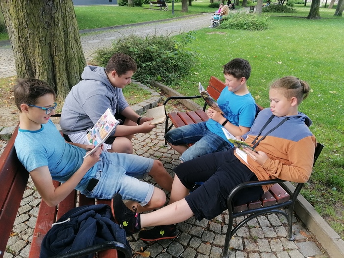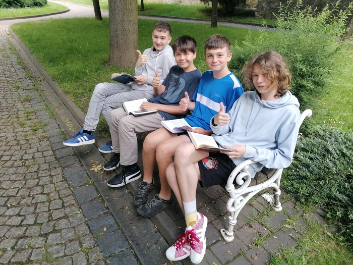 Úvod > Ze života školy > Čtení v parku 7.A