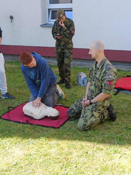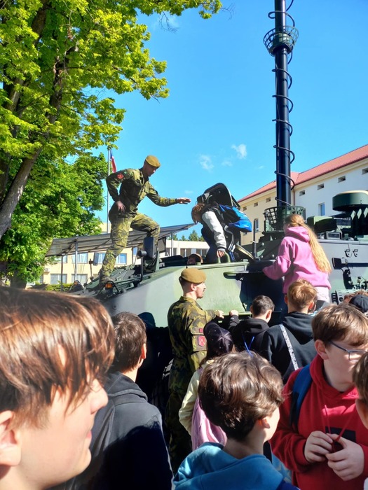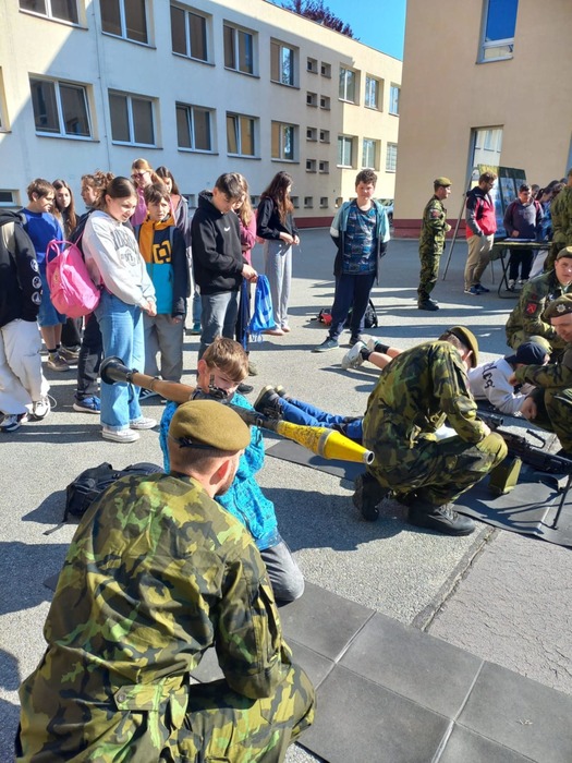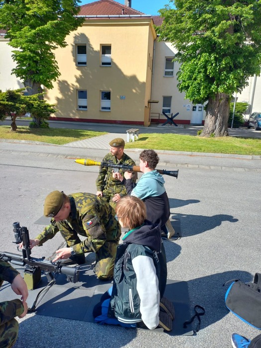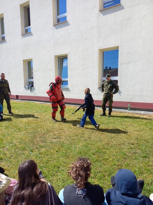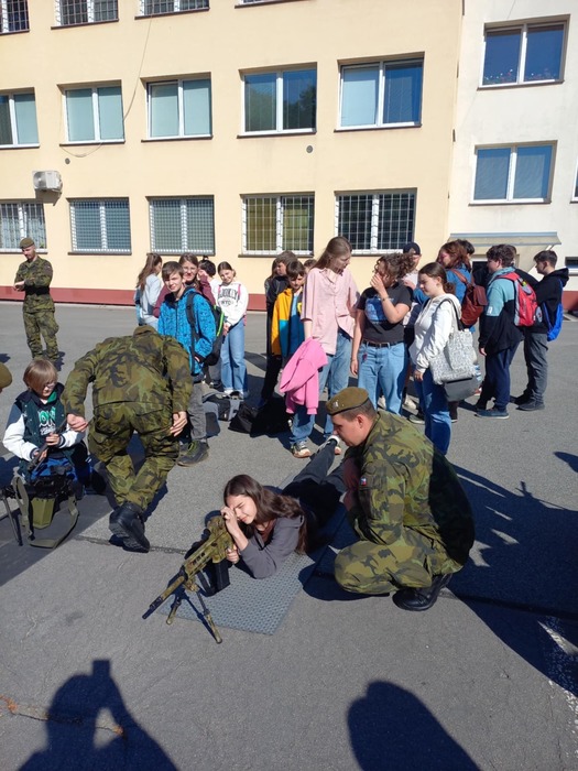 V květnu žáci 2. stupně navštívili jindřichohradecká kasárna a osobně se setkali s vojáky armády ČR. Děti si mohly vyzkoušet práci s různými zbraněmi, základy zdravovědy, zacvičily si ve fitku, sedly si za volant bojových vozidel nebo komunikovaly přes vysílačky. Někteří žáci si mohli vyzkoušet i základy bojové techniky musado. Pro všechny to byl velmi podnětný a zajímavý zážitek.