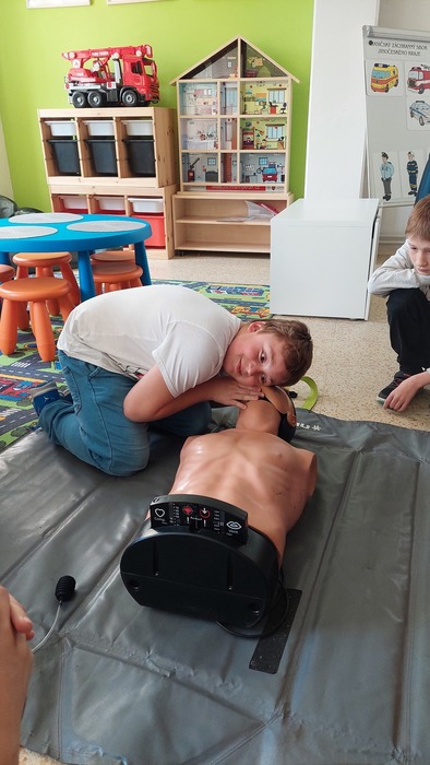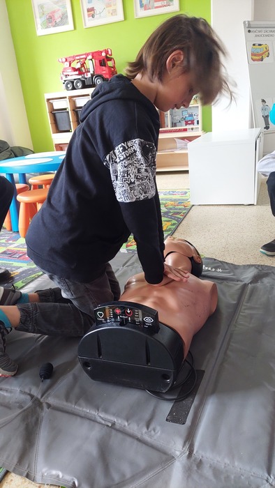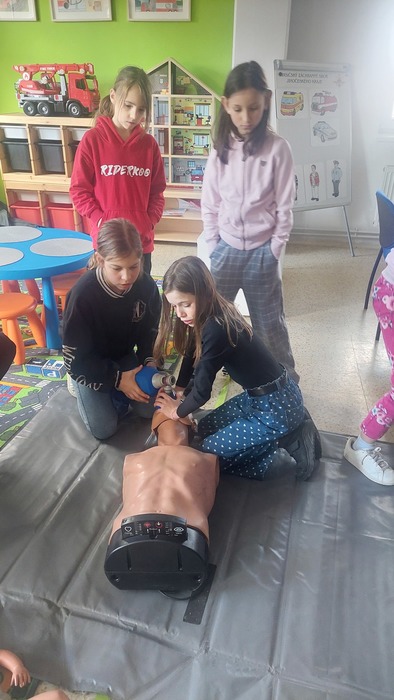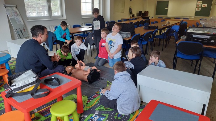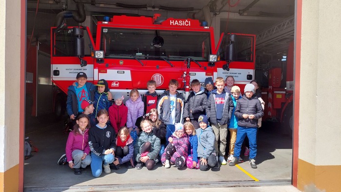 Úvod > Ze života školy > 4. E Návštěva u hasičů - první pomoc