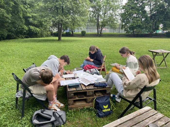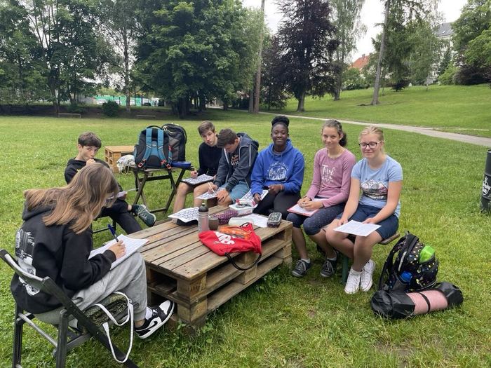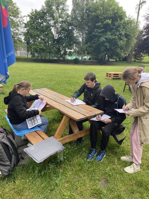 V pátek 9.června se vyučování 7. B přesunulo ven do parku. Zde měly děti připraveny úkoly z českého jazyka, matematiky a přírodopisu pod taktovkou paní učitelky Hronové, Kaňkové a Landkammerové. Práci na zadaných úkolech si studenti řídili sami. Důležité bylo využít nejen znalosti, ale i kreativitu. Podstatné pro plnění úkolů byla spolupráce. Všechny skupiny si nakonec poradily a užily si příjemný den venku.