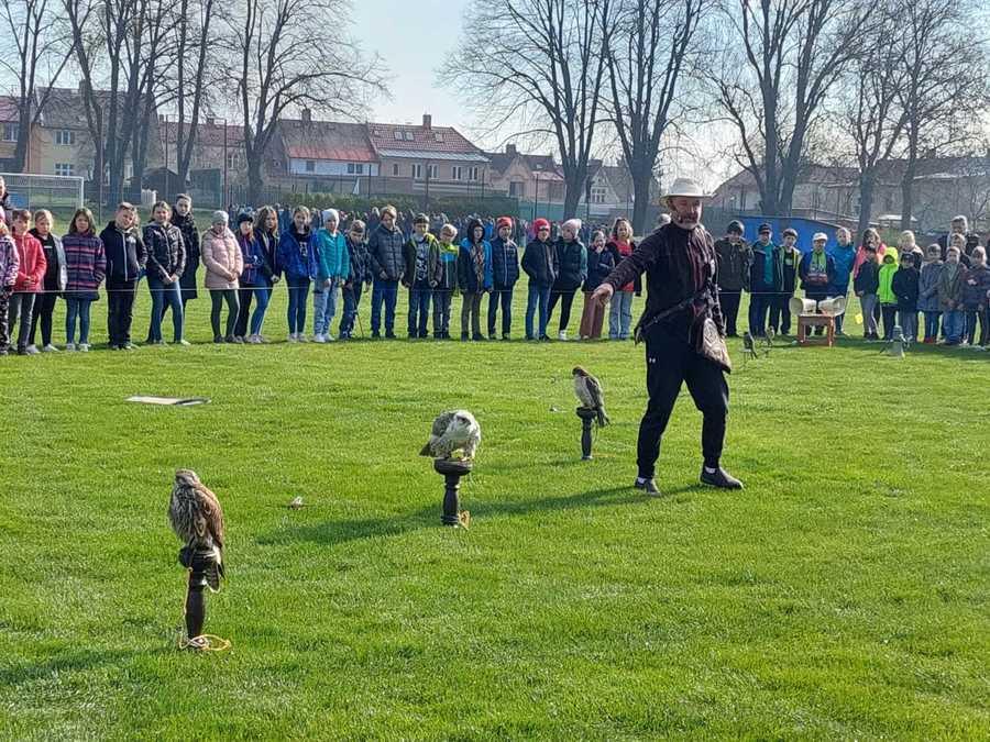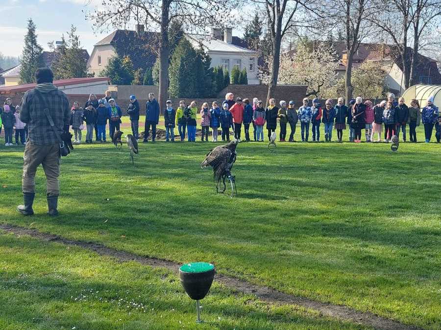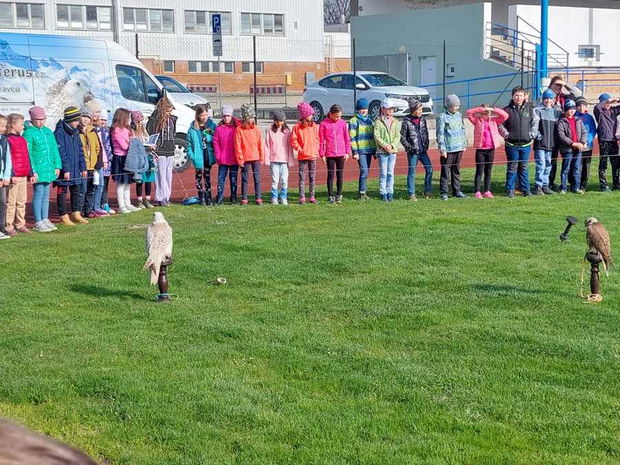 V úterý 26. 4. 2022 proběhla na Tyršově stadionu pro všechny žáky ukázka dravců.