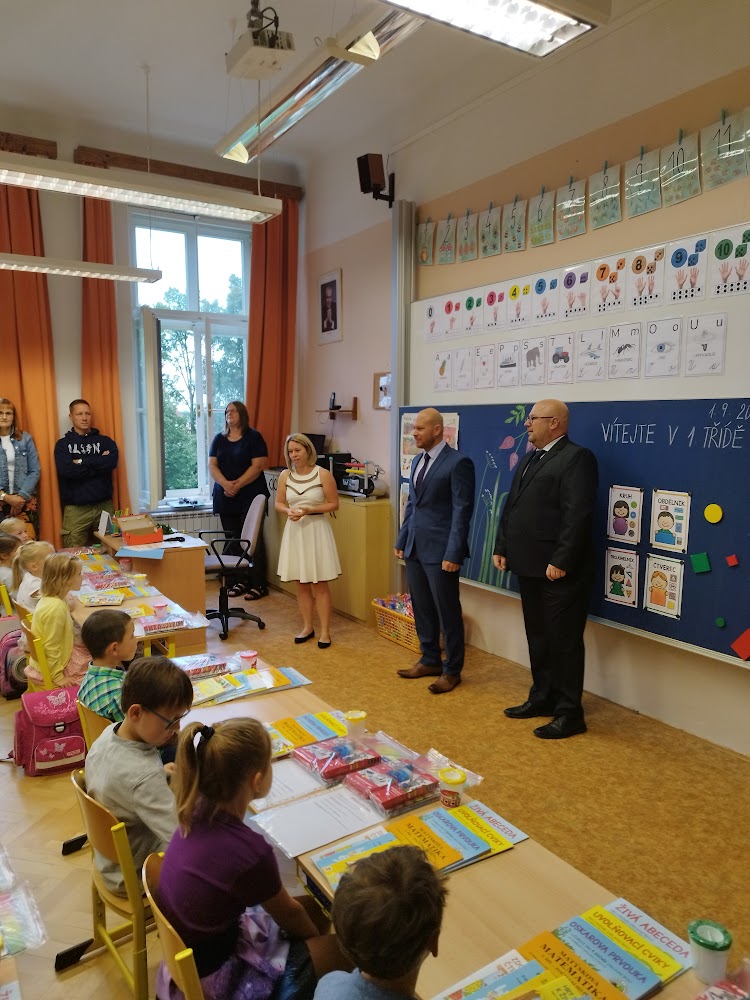 Ve čtvrtek 1. září 2022 slavnostně zahájili noví "prvňáčci" své vzdělávání na základní škole, při kterém je kromě třídních učitelek a pana ředitele přivítal také místostarosta města Jindřichův Hradec Bc. Radim Staněk. Všem novým žáčkům přejeme mnoho úspěchů a radosti v jejich studiu a rodičům co nejvíce radostí a nejméně starostí při vzdělávání jejich dětí.