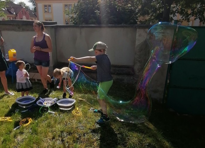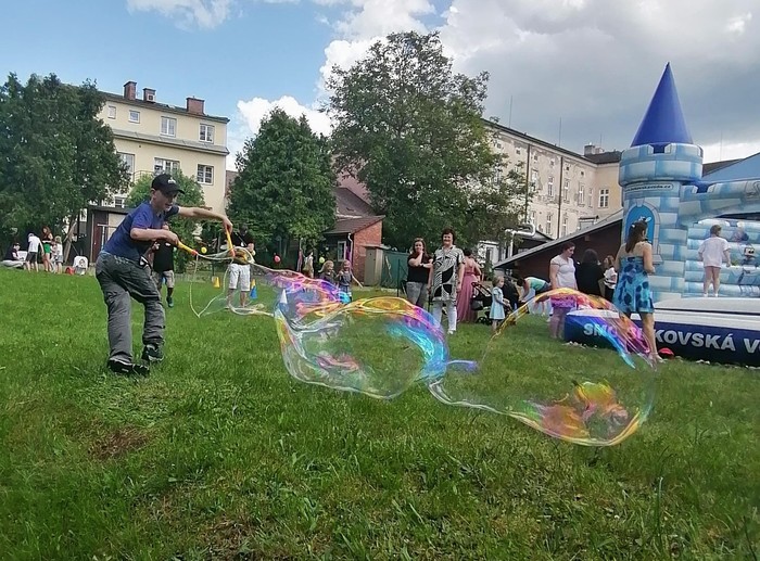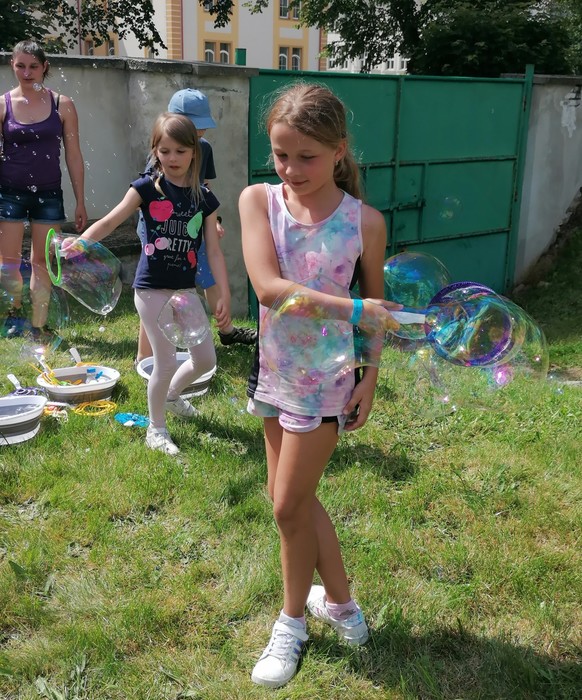 Dobrá nálada, skvělá zábava, radost dětí i dospělých, taková byla zahradní slavnost na naší školní zahradě. Pro děti byl přichystán pestrý program. Zábavné hry a soutěže, malování na obličej, taneční vystoupení, balonkovo-bublinová show, skákací hrad a bohatá tombola. Po celou dobu slavnosti žila naše zahrada hudbou a tancem. I počasí se na nás celé odpoledne usmívalo. Chtěli bychom poděkovat všem rodičům za příspěvky do tomboly, a všem, kteří nám pomáhali s organizací a realizací našeho báječného odpoledne. Všichni odcházeli nadšeni a s úsměvem na tváři. Děkujeme za návštěvu a budeme se těšit na příště.